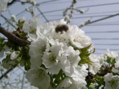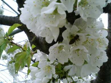 | 蜂のようなのがみえますか?花蜂の仲間です。しまはなアブだと思われます。 |